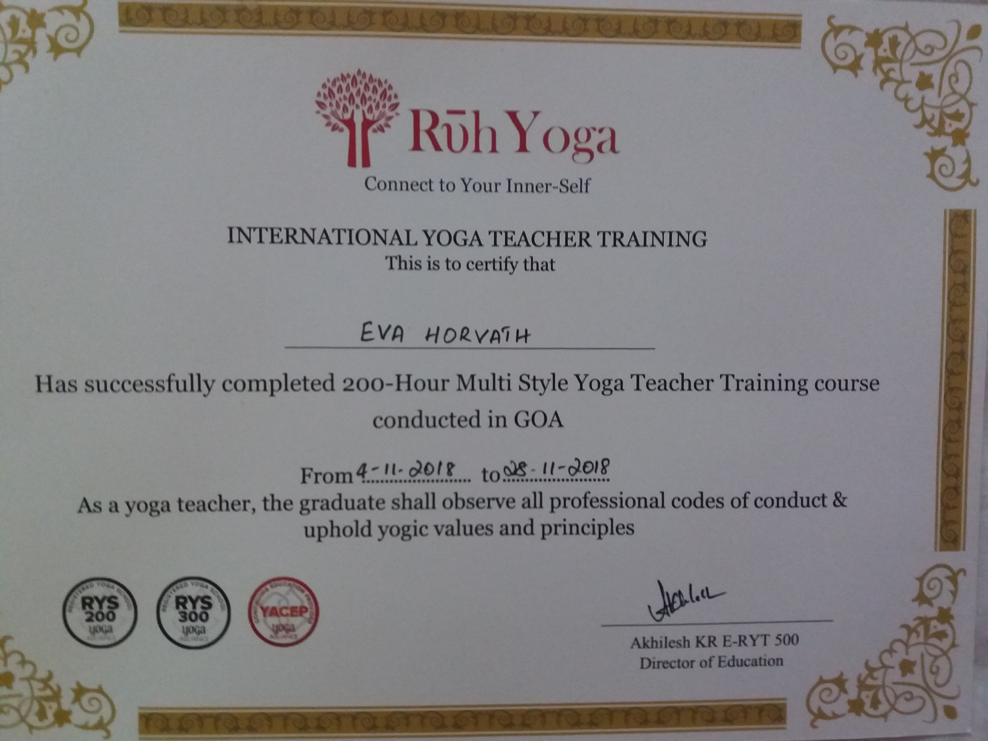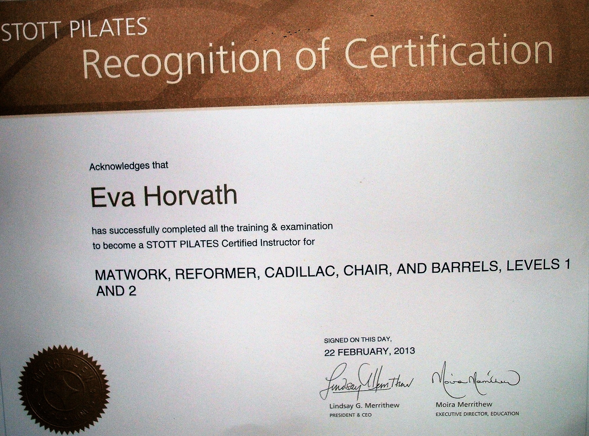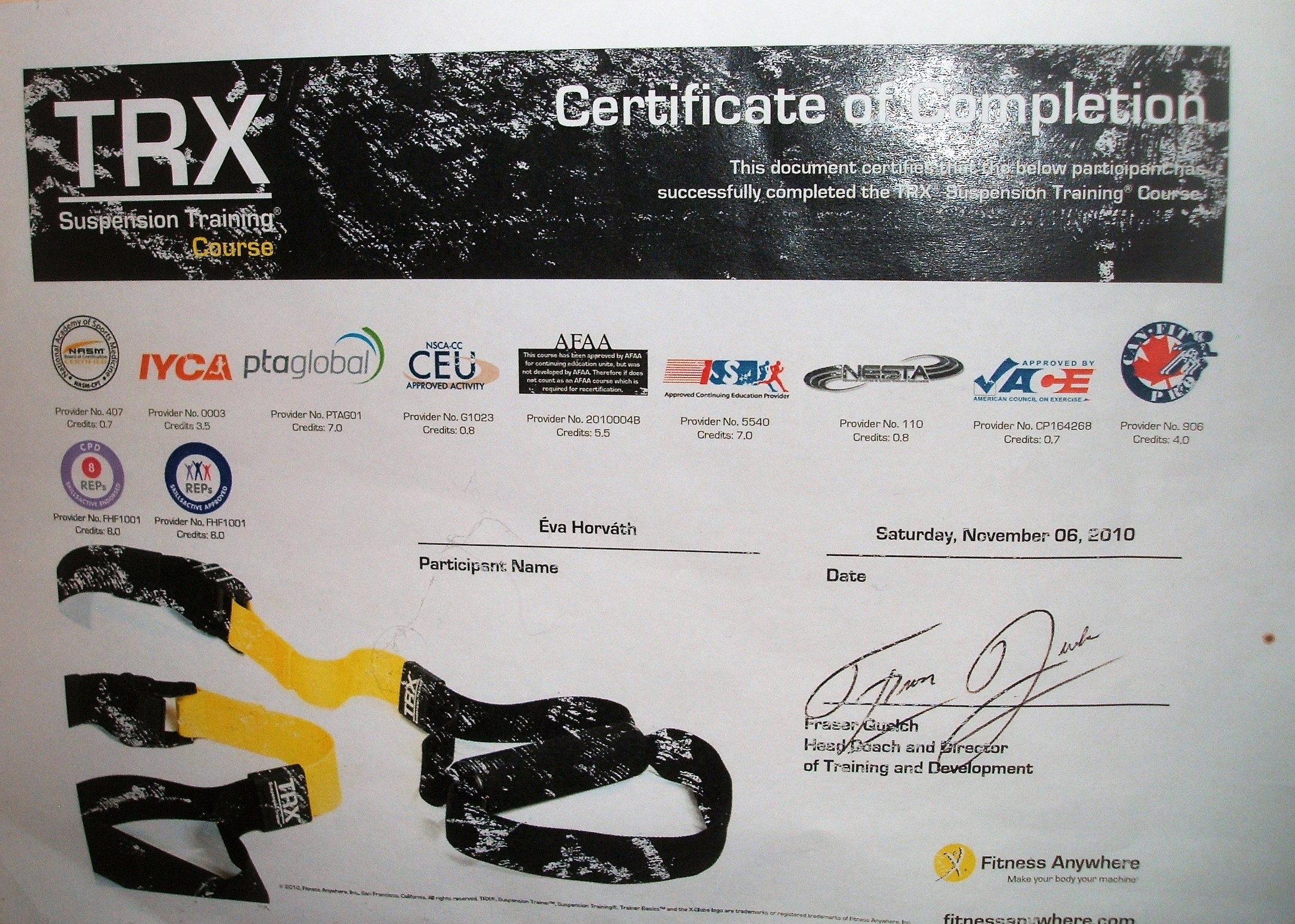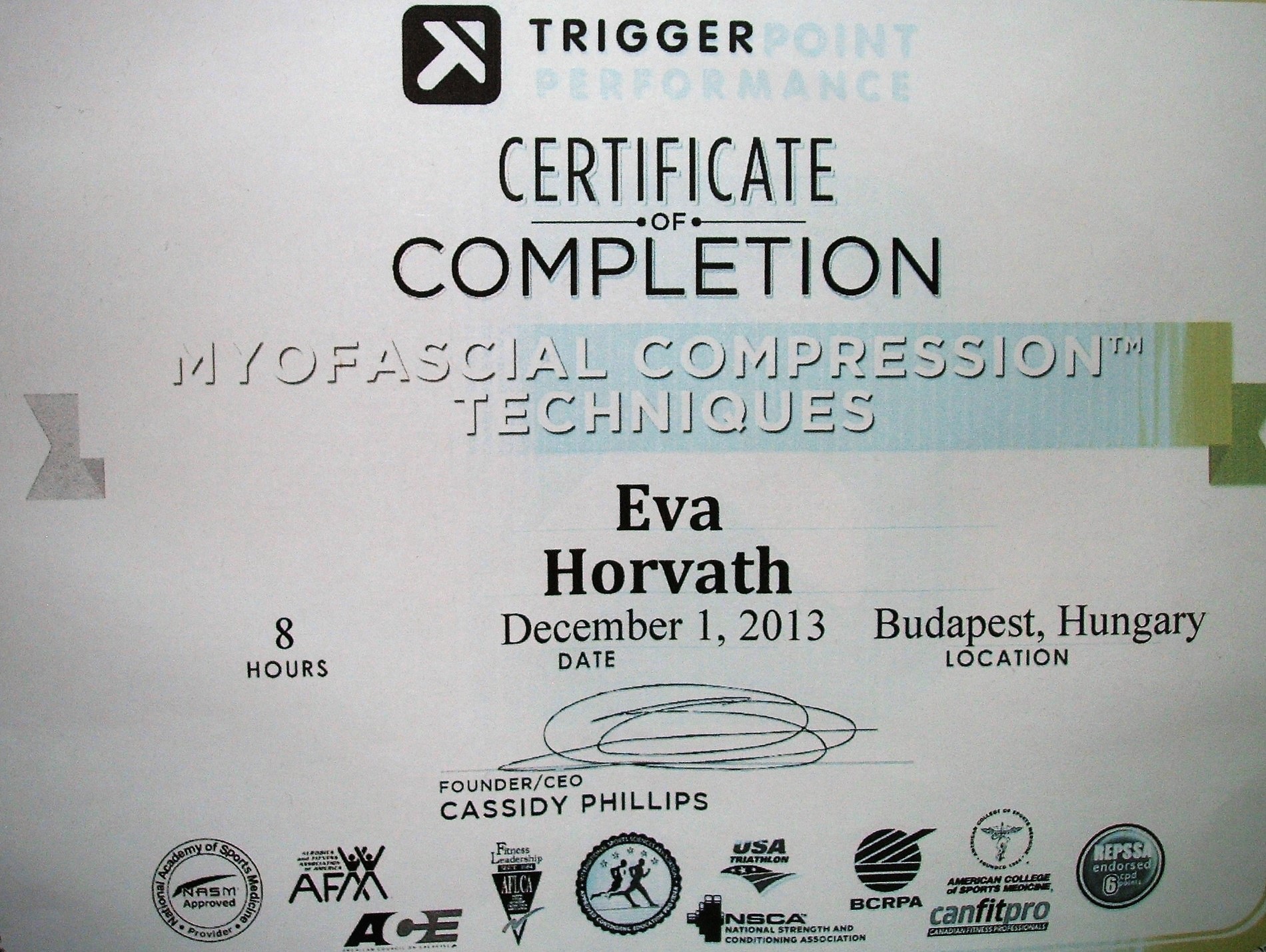 Az évek előre haladtával mindig arra törekedtem, hogy különböző képzéseken vegyek részt. Így számos hazai illetve nemzetközi kongresszuson bővítettem és bővítem szakmai tapasztalataimat köztük a IFAA AEROBIC oktatói, BODY BALL és BOSU egyensúly tréneri tanfolyama is szerepelt, az új funkcionális eszközök a TRX, a GFLEX és a RIP tréneri továbbképzés , illetve egy speciális kompressziós masszázs technika a TRIGGER POINT PERFORMANCE. Legújabb sikeres továbbképzéseim egyike a SPARTAN GIRJA oktatása, a NITA KINESIO TAPING, FLOSSING illetve SVÉDMASSZÁZS, KÖPÖLYÖZÉS, TRADÍCIONÁLIS THAI MASSZÁZS és TRIGGERPONT, FASCIA TERÁPIA alkalmazása akár FASCIA KÉSes technikával az egyéni órák után lazítás, csomó oldás, energetizálás esetében. Lehetőségem volt az USA-ban élni és ott ismerkedtem meg a PILATES szinte minden fajtájával. Az évek során magamon figyeltem meg jótékony hatását ezért döntöttem a STOTT PILATES képzés mellett, melynek teljes körű hitelesített oktatója vagyok. A pilates mellett a YOGA is szerepet kapott az életemben így Indiában töltött időm alatt sikerült az oktatói képesítést is megszereznem.